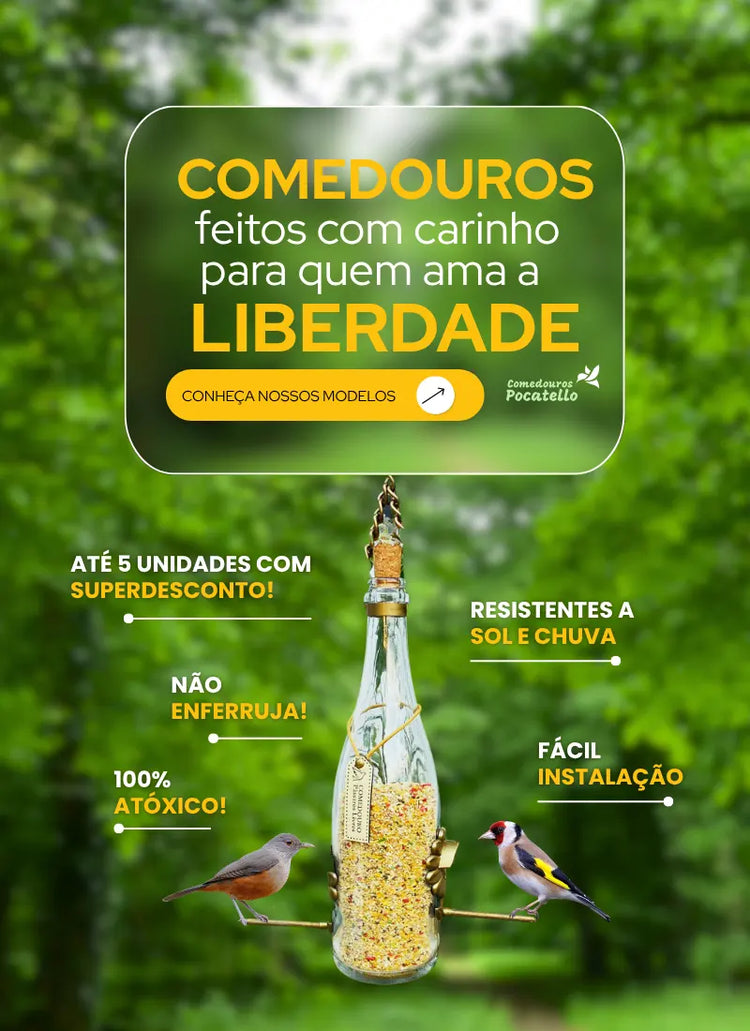 Os comedouros Pocatello é a união perfeita entre beleza e funcionalidade. Criado para quem aprecia cuidar dos pássaros com praticidade, ele é feito com materiais de alta qualidade, que garantem resistência, durabilidade e total impermeabilidade. Além de não enferrujar, possui um design sofisticado que valoriza qualquer área externa. Seja para atrair novas aves ou alimentar com segurança aquelas que já frequentam o seu espaço, os comedouros Pocatello transformam o ambiente em um refúgio acolhedor, natural e cheio de vida — uma escolha que encanta tanto os pássaros quanto quem cuida deles.